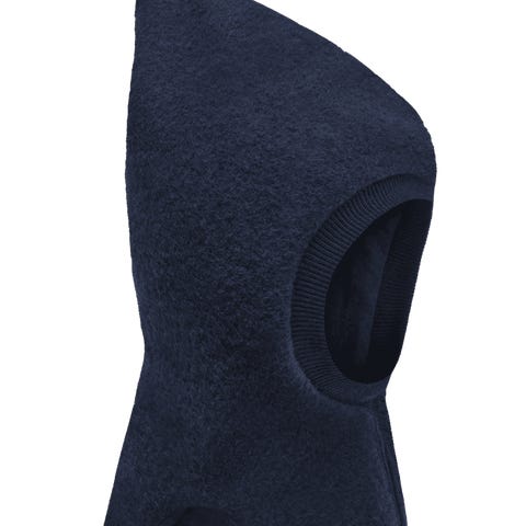 Balaclava fra Hust & Clair i grønnblå farge. Bomull på innsiden og ull på utsiden. Pent brukt.