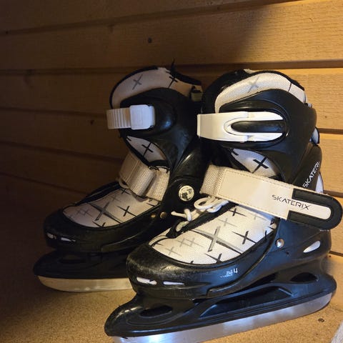 Graf barneskøyter størrelse 27/30, såvidt brukt. Skøytene har svart og hvit farge, med justerbare stropper for god passform. Materialet er robust og tilpasset barnets fot for skøyting