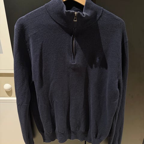 Ralph Lauren Polo genser i størrelse L, fargen grå. Genseren er laget av bomull og har en kabelstrikket design. Passer for menn.