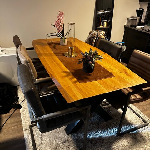 Pen spisestue i hvitpigmentert eik selges. Stort bord(200/245cm x90cm) med 1 stk ileggsplate(45cm). Ileggsplate lagres i bordet når ikke i bruk. 8 stoler hvitpigmentert eik, puter mørkgrå ullstoff. Som nytt.