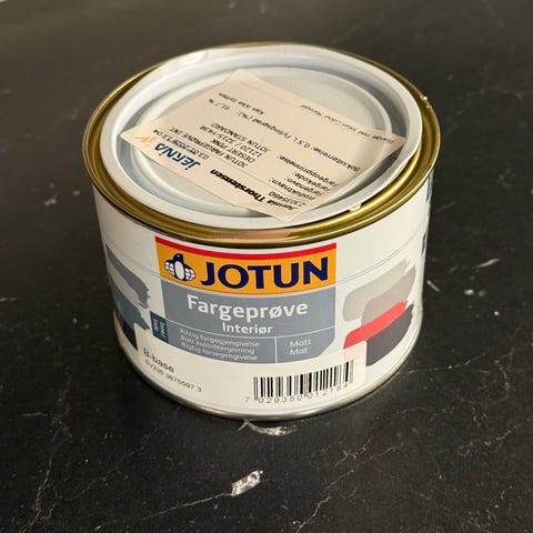 Jotun Fargeprøve i farge Nobile 1177/1420-Y31R 0,5 L. Kjøpt på Jernia Thorstensen 03.01.2026. Bare brukt til å male en 30x30 cm fargeprøve på vegg.