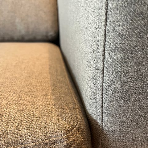 Hedda sofa fra Skeidar. Den ene sitteputen er snudd motsatt vei da den har blitt ødelagt etter å ha blitt tygd på av hund (se bilder). Forutenom dette er det ellers ingen synlige flekker eller ødeleggelser på sofaen. Om man ønsker kan man nok kjøpe ny pute/bytte ut deler på Skeidar da denne modellen fortsatt er i salg.