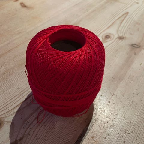 Kan hekles strikkes brukes som følgetråd brukes til veving mm. Super tråd. Oppbevart i plastpose og er god som ny.💕