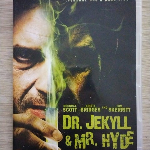 filmen Jekyll + Hyde med målene 112 x 77 cm. Coveret har et motiv av en hånd som holder en tråd, med en hvit bakgrunn og tekst i svart og rød farge.