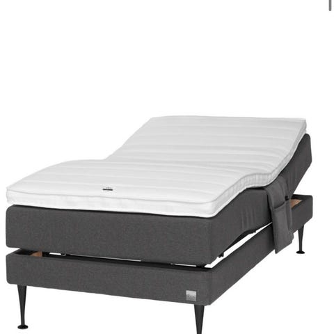 Regulerbar seng som trinnløst lar deg justere ryggen og fotenden. Den justerbare rammen har to motorer så en kan justere rygg og fotendene individuelt. Vendbar madrass. .