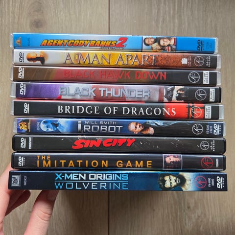 Mappe med 100 DVDer. Mange kjente klassikere. Inkludere:
