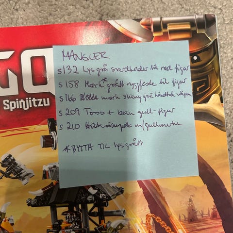 LEGO NINJAGO leketøyssett med flere minifigurer og byggbare elementer. Settet inkluderer ulike deler som kan settes sammen til scener og figurer fra NINJAGO-temaet.
