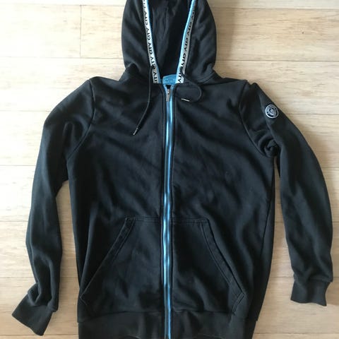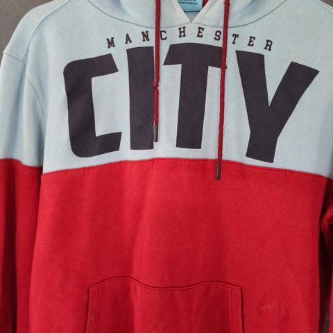 Manchester City halsvarmer laget av fleece materiale. Halsvarmeren er lyseblå med sort innside og har Manchester City-logo foran. Den har justerbar snor for tilpasning av passform. Pent og lite brukt.