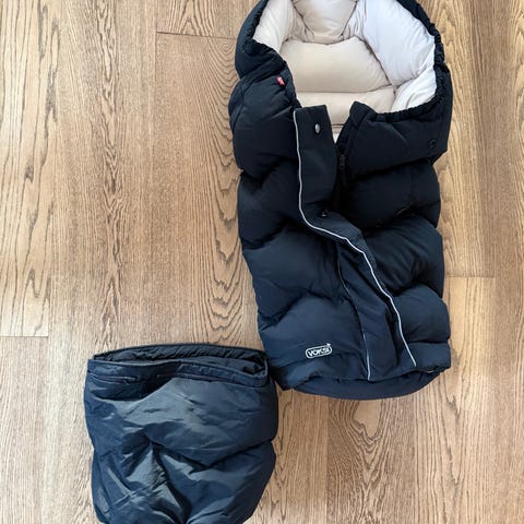 Pent brukt til ett barn, men har noen flekker som ikke har gått bort i vask. Vognposen er vasket .