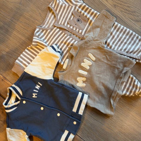 6 bodyer og 1 bukse. Noe er aldri brukt, men vasket. Noen fra hust and claire, noe fra name it og hm.