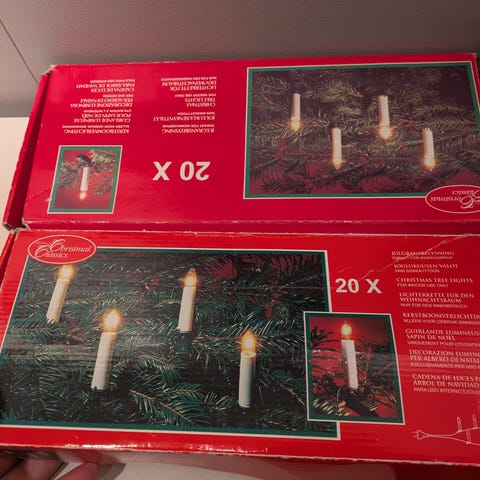 Et sett juletrelys med 16 lys selges kr 50