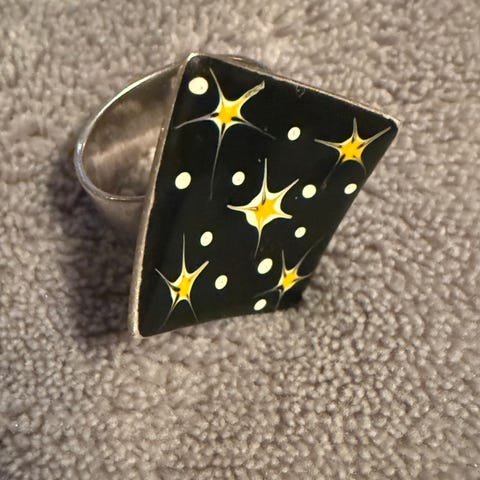 Dette er et dekorativt statement-smykke som passer både til bruk og for deg som samler på vintage og retro smykker.