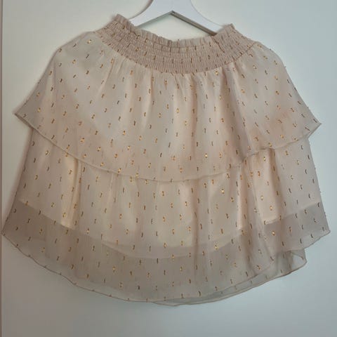 Pent og feminint omslagsskjørt fra Love Lolita i en lekker navygrønn farge. Skjørtet har en flatterende passform og knyting i siden. Brukt lite og fremstår i meget god stand.