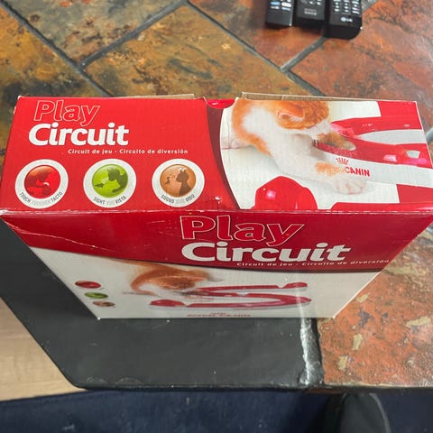 Kjøpte denne bane med ball som blinker til katten, men fallt ikke i smak. Banen kan lages på forskjellige måter for å gi variasjon.
