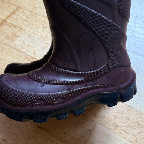 Cherrox barnestøvler i størrelse 29. Støvlene er lilla og har et isolerende, varmt fôr innvendig. Sålen har godt mønster for grep og stabilitet. Egnet for bruk i vått og kaldt vær.