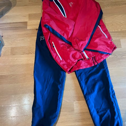Pent brukt Dæhlie overtrekkssett til langrenn eller trening. Bjørn Dæhlie Ridge langrennsjakke i blått og bukse i svart.