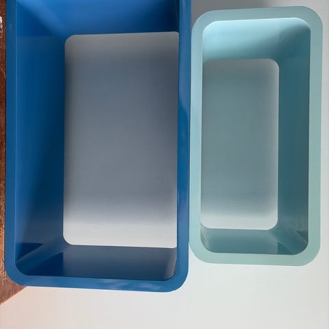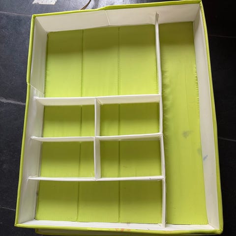 Trofast oppbevaringsbokser fra IKEA i plast i gul og grønn. Egnet for oppbevaring av ulike småting. Boksene er stablebare og har et enkelt design.