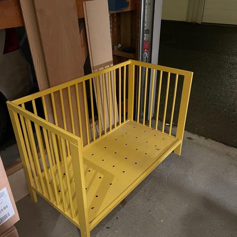 IKEA Sprinkelseng. Pent brukt, men noen merker kan forekomme, se bilder. Den er demontert. Madrassen kan medfølge om ønskelig.