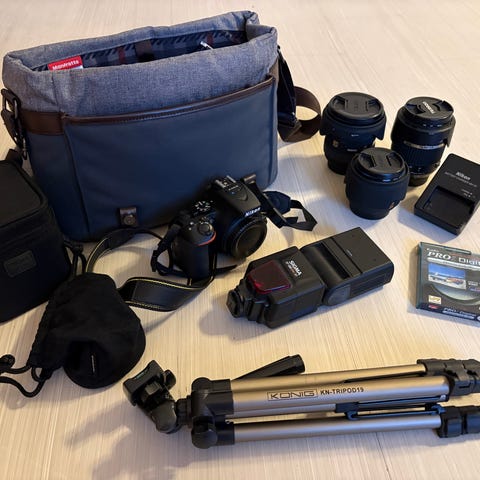 Selges samlet eller hver for seg - Nikon hus og objektiver - blits - vesker/sekk