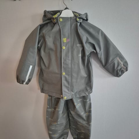 Godt brukt regntøy fra Kattnakken, men mye bruk igjen. Settet har en del misfarginginger i stoffet som gjør at det ikke lenger er helt mørkeblått, men har fått en litt grådig farge. Svak rødfarge på en arm (se bilder), men er ellers helt og fint.