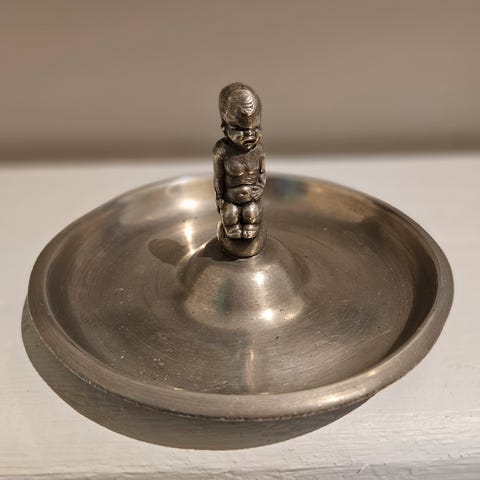 Vintage askebeger i tinn, mangler 2 av sigarettholderene, se bilde.