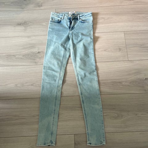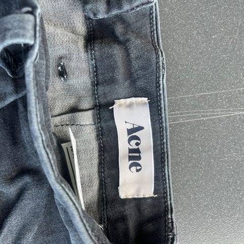 Stilren grå bukse fra Acne Jeans i størrelse 31/32. Klassisk passform og god kvalitet, passer fint både til hverdags og penere anledninger. Pent brukt og i god stand.