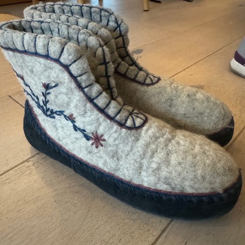 Klassisk ankelhøy ulltøffel med skinnsåle i str 39