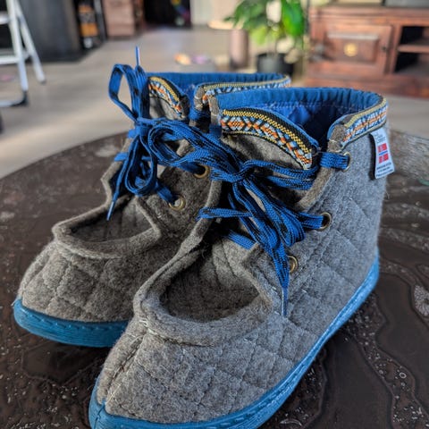 Tykt ullfor som varmer. Tovet i 100 % merinoull. Pent og lite brukt.