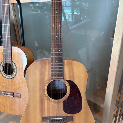 Pent brukt Sigma DT-1 akustisk gitar i naturfinish – klassisk dreadnought-form med fyldig, varm klang og god projeksjon. Perfekt for både nybegynnere og viderekomne!