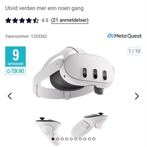 Selger ett Meta Quest 3 med 512 GB lagring, kun testet og fremstår som ny.