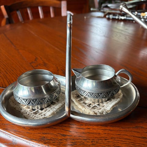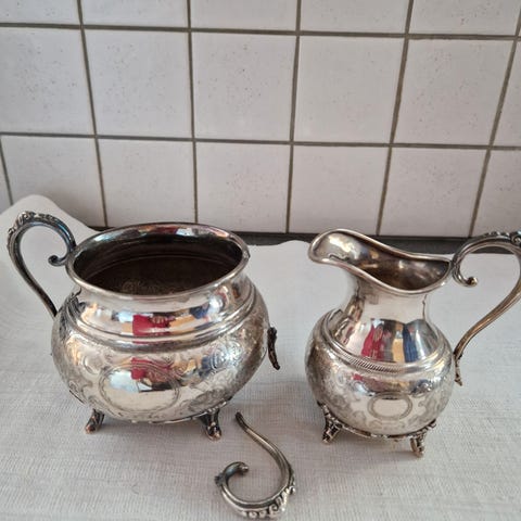 Fløtemugge og sukkerkopp.