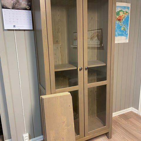 Pen og praktisk seksjon i 3 deler gis bort. God lagringsplass og lys i overskapene. Fraktes i 6 deler.
