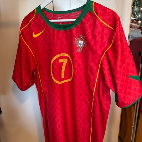 Selger en signert Portugal-landslagsdrakt med Luis Figo, en av Europas største fotballikoner.