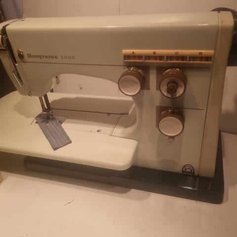 Husqvarna symaskin trykkføtter og tilbehør i tilhørende boks selges for 500 kr. Passer feks til modell 21 A.