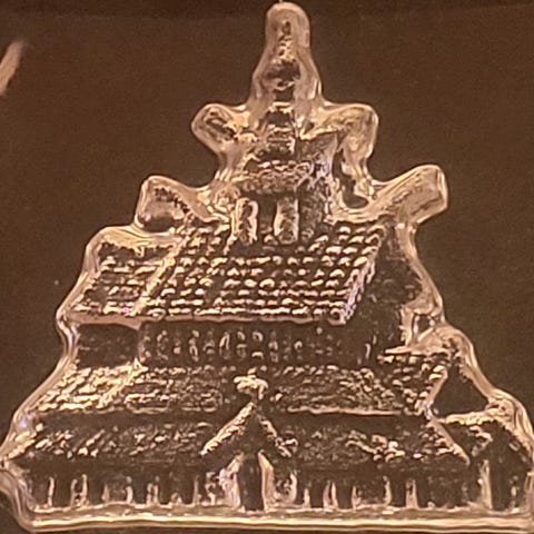 Håndmalt handkerchief-skål fra Kosta Boda, designet av Ulrica Hydman Vallien. Skålen er laget i frostet glass med karakteristisk håndmalt dekor i gule og grønne toner. Den myke, bølgende kanten gir den klassiske “handkerchief”-formen.