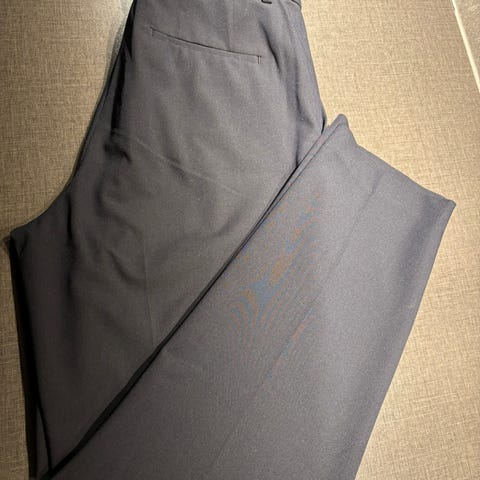 Fine og vide "dressaktig" bukser, blei litt for kort til meg (1,79). Kjøpt på Uniqlo i høst og brukt kun eit par gonger. Bomullsmiks.