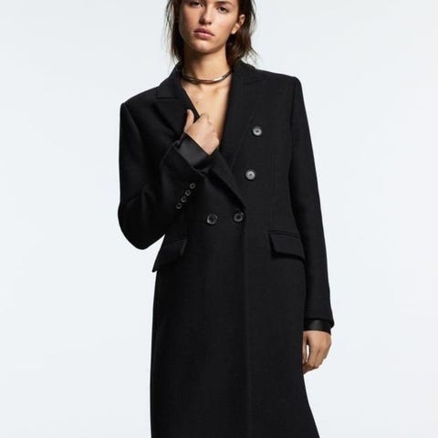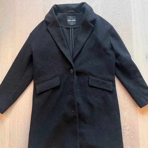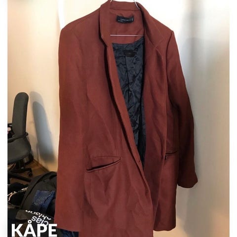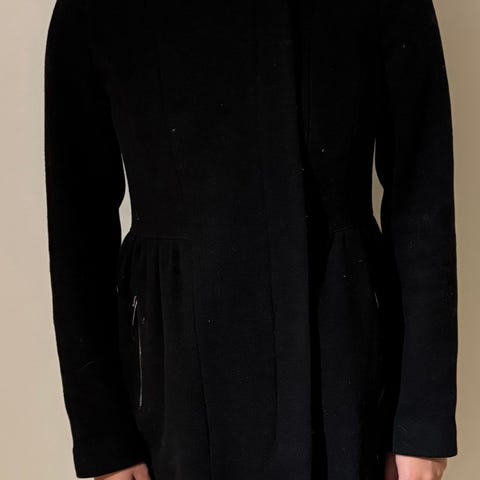 Zara Woman kåpe i svart farge, størrelse L. Kåpen har dobbelspent knappestilling og er i 100% bomullsfløyel, bare at jeg har fjernet etiketten. Veldig myk og behagelig.