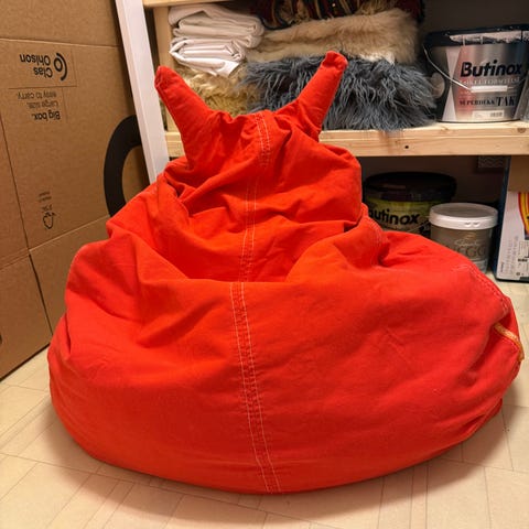 Kjøpt i 2022, trenger kanskje litt påfyll av «saccosekk fyll»