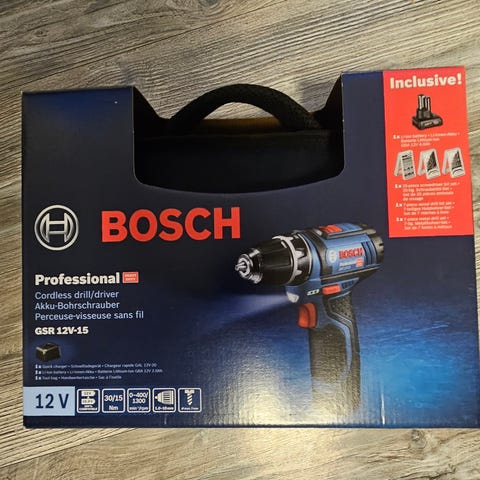 Selger en pent brukt Bosch GSR 18V-60 FC (kun maskin, avbildet på bilde 1). Maskinen er kompatibel med Bosch sitt FlexiClick-system, som gir høy fleksibilitet gjennom bruk av ulike forsatser (illustrert på bilde 2).