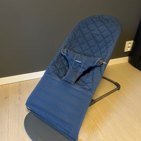 Babybjörn barnestol i grå farge. Stolen er godt brukt, men har mye bruk igjen. To hull i stoffet, men det kan lett syes sammen. Den er ellers i tipp topp stand!