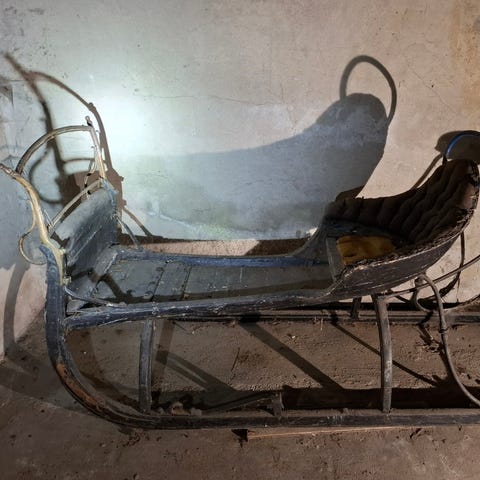 Stor solid antikk kjelke i god stand med sitteplass til flere selges.