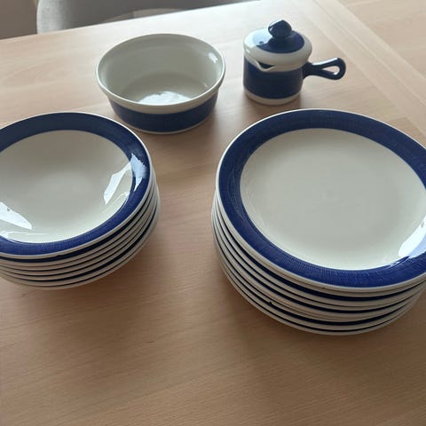 Pent brukt (ubetydelig nag under den ene tallerken, se bilde)