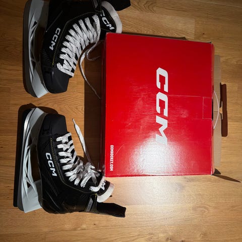 Reebok ishockeyskøyter i størrelse 44. Skøytene er svarte med hvite detaljer og har en polstret innside for komfort. Egnet for ishockey. Små bruksmerker.