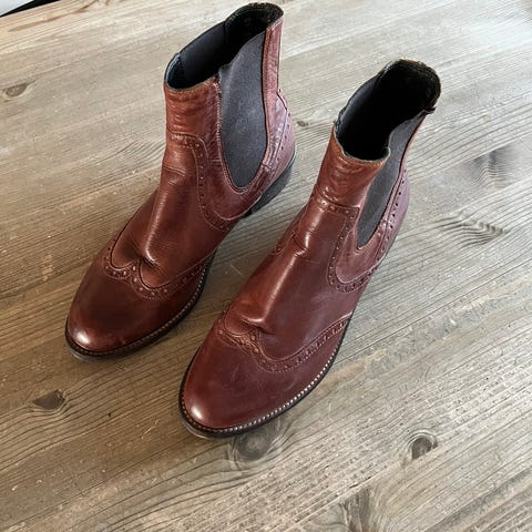 Gode sko selges, da de har blitt for små. En vask og pussing vil gi skoene økt levetid.