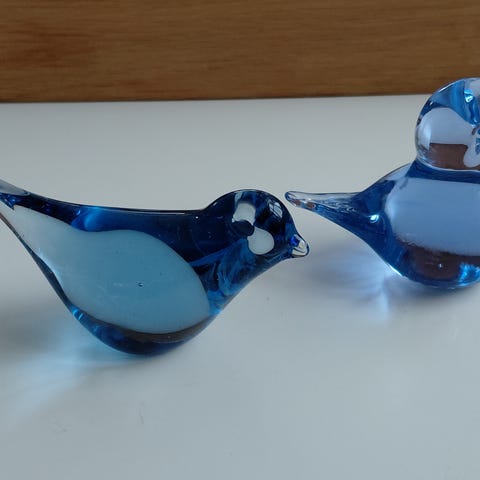 Fuglene veier 695 gram til sammen. Fuglen i midten av bildet har et lite nagg på nebbet.