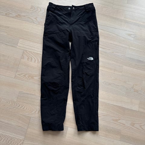 The North Face barnebukse i størrelse 140, svart farge, laget av bomull. Passer for både gutter og jenter (unisex). Buksen har justerbare seler og er designet for barn.