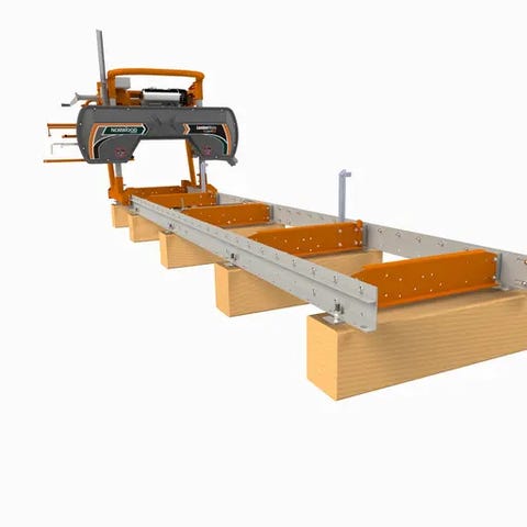 Sagbenken jeg bruker dette på nå har effektiv saglengde 5,8m. Wire justeres ved lengre/kortere sagbenk.