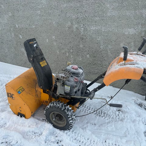 Fiskars Classic snørydder / snøskuffe. Godt brukt, men fungerer fortsatt fint og har fortsatt flere sesonger i seg. Selve skuffebladet kan også byttes da de selges løse, men det er ikke nødvendig før etter mer bruk. Svært effektiv til flytting av store snømengder. Den er også forsterket i bakkant for å kunne bruke foten. med rød metallskuffe og blå håndtak.