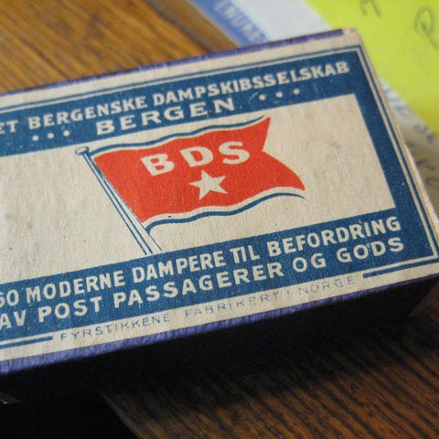 Slipsnål fra TFDS, merket med Hurtigruten og rederiflagget til Troms Fylkes Dampskibsselskap