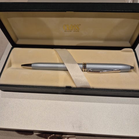 Cross ATX fyllepenn sandblasted. Pennen leveres i original eske med ekstra blekkpatron. Designet for presis og komfortabel skriving. Alt er som det skal være, ingen problemer med at skrive. Dertil er de fuldendte instruktionerne inkluderet.